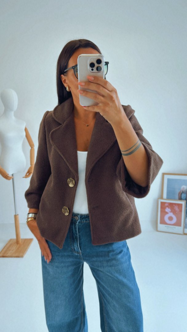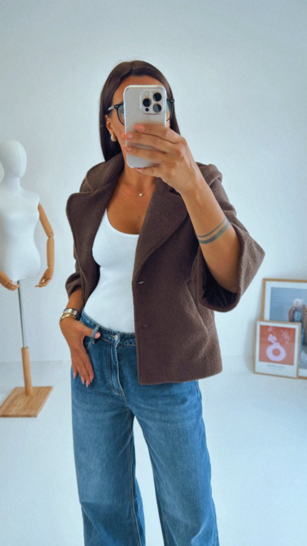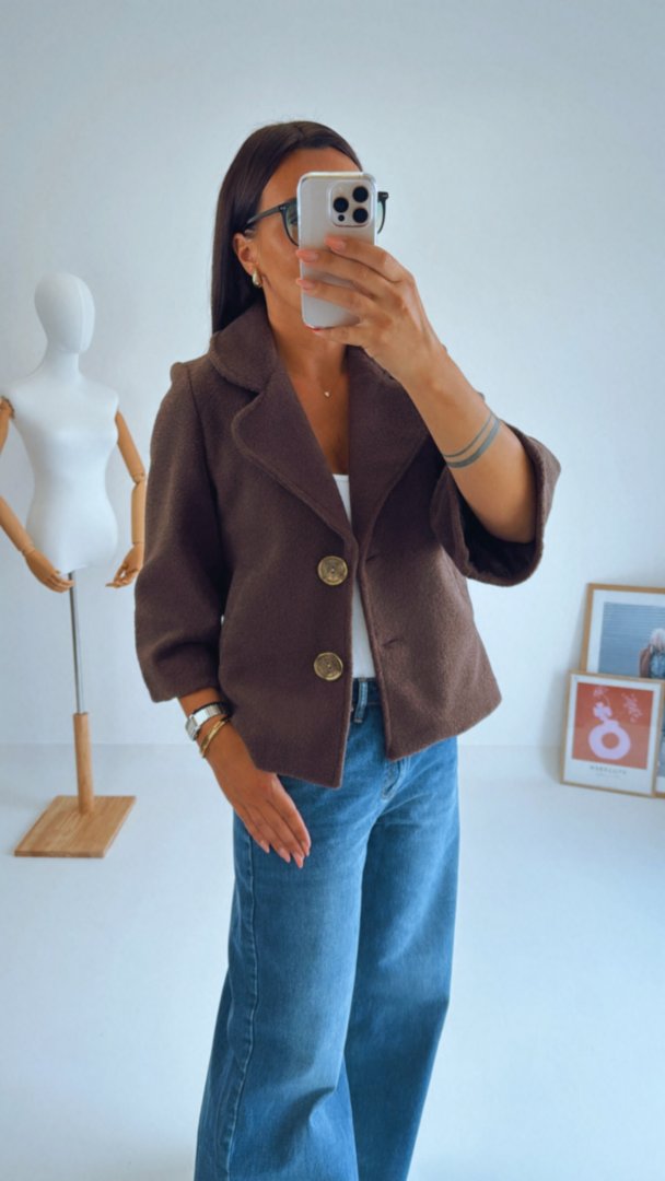 - Hnědý teddy kábátek mírně áčkového střihu