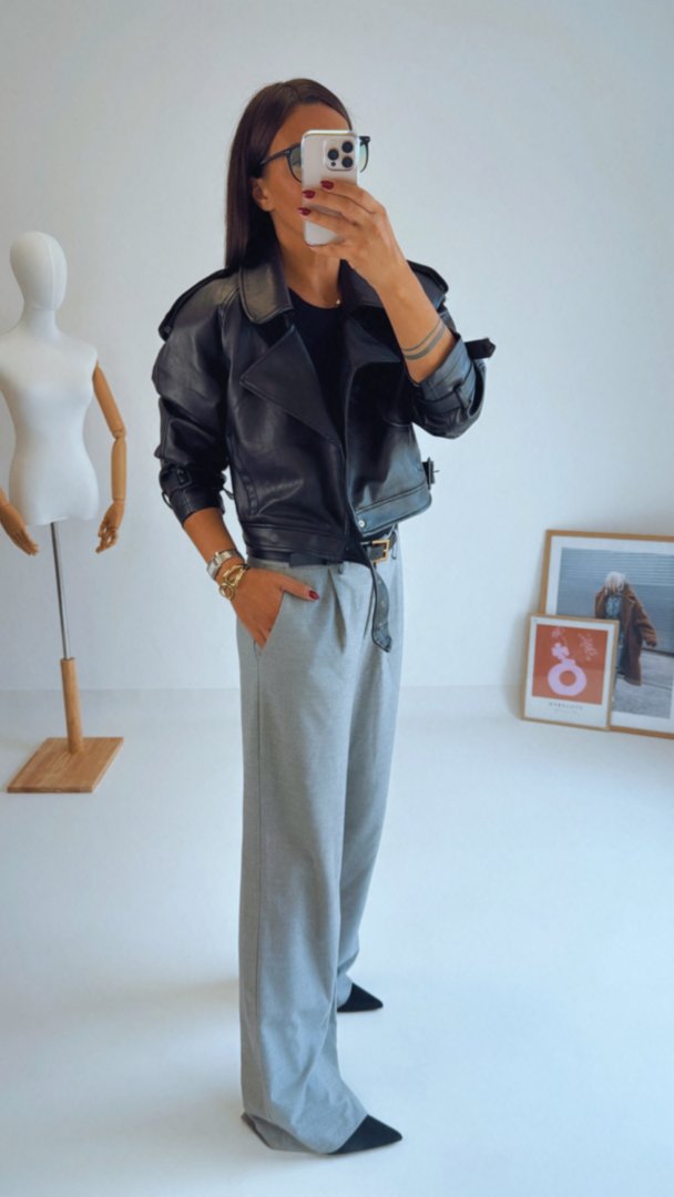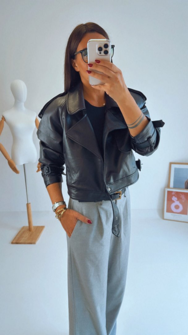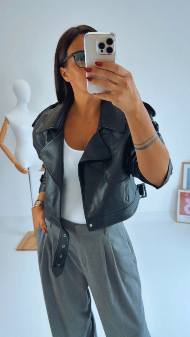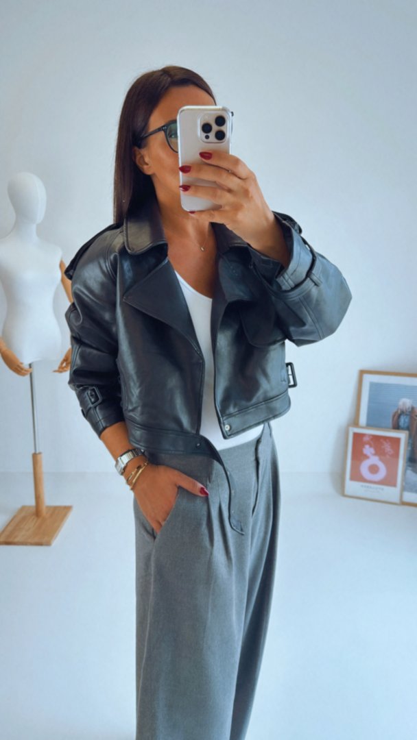 Stylový koženkový křivák s ramenními vycpávkami. Vnitřní podšívka je tón v tón. Opasek je v pase i na rukávech na staženíModelka má na sobě velikost L (je volnější), křivák má výrazné ramenní vycpávky. výška modelky 180cm / bězná velikost LVelikosti odpovídají, zvolte svoji běžnou velikost.materiál: 100% Polyuerethan