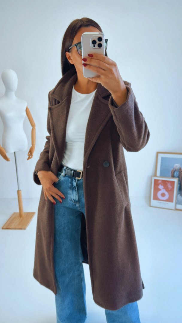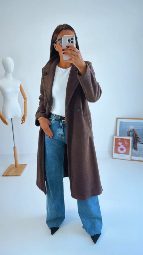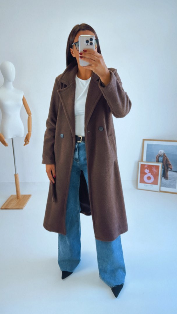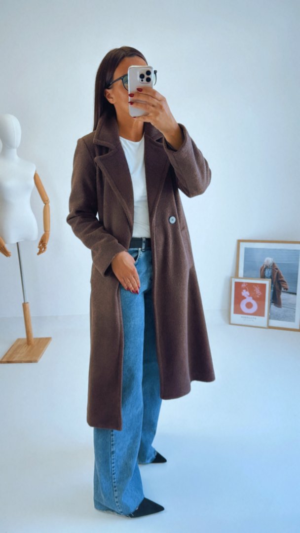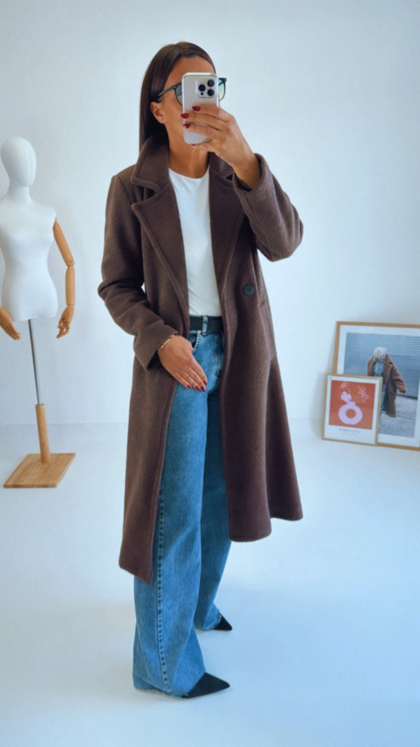 Hnědý kabát volného střihu