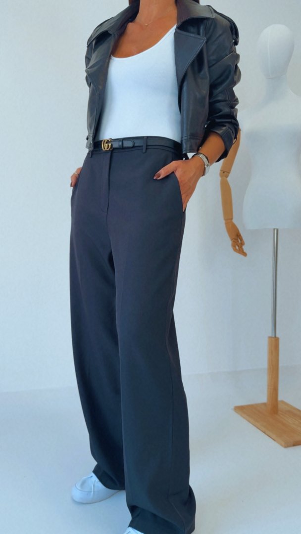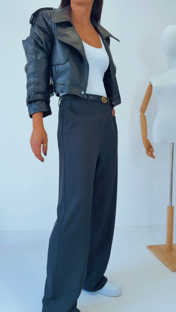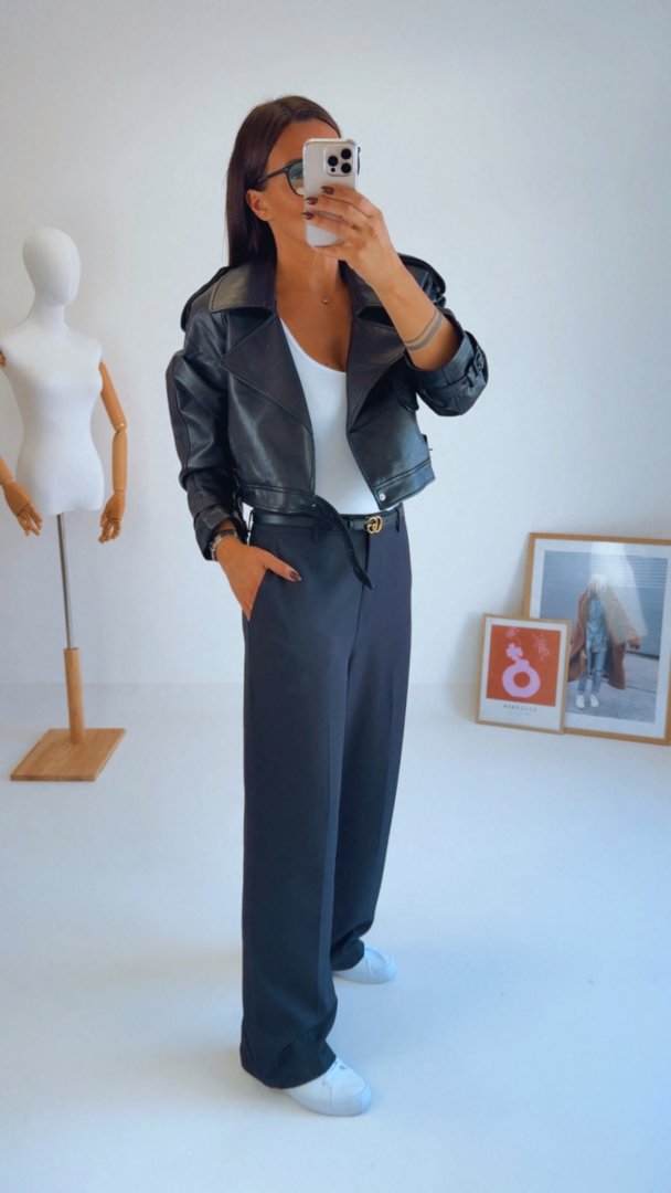 - Černé kalhoty s vysokým pasem