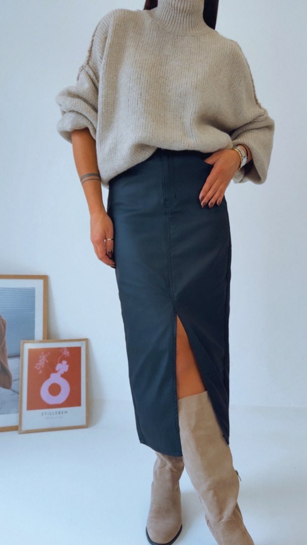 • Černá midi sukně v imitaci kůže