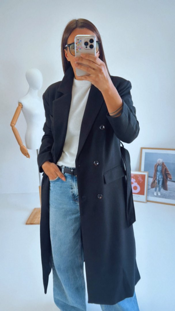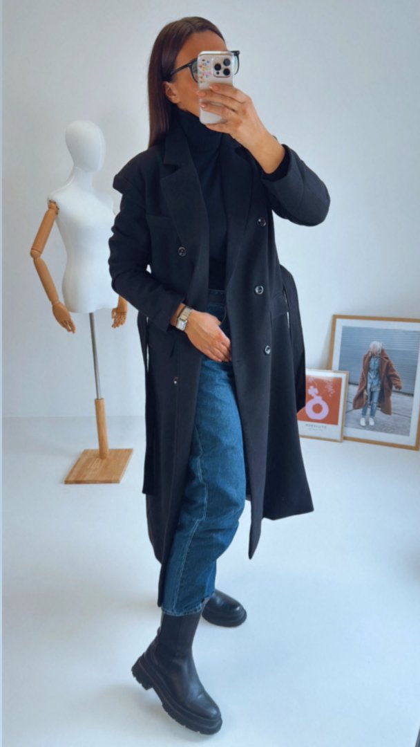 - Kabát má zapínání na knoflíky nebo lze zavazovat v pase opaskem