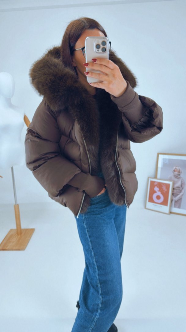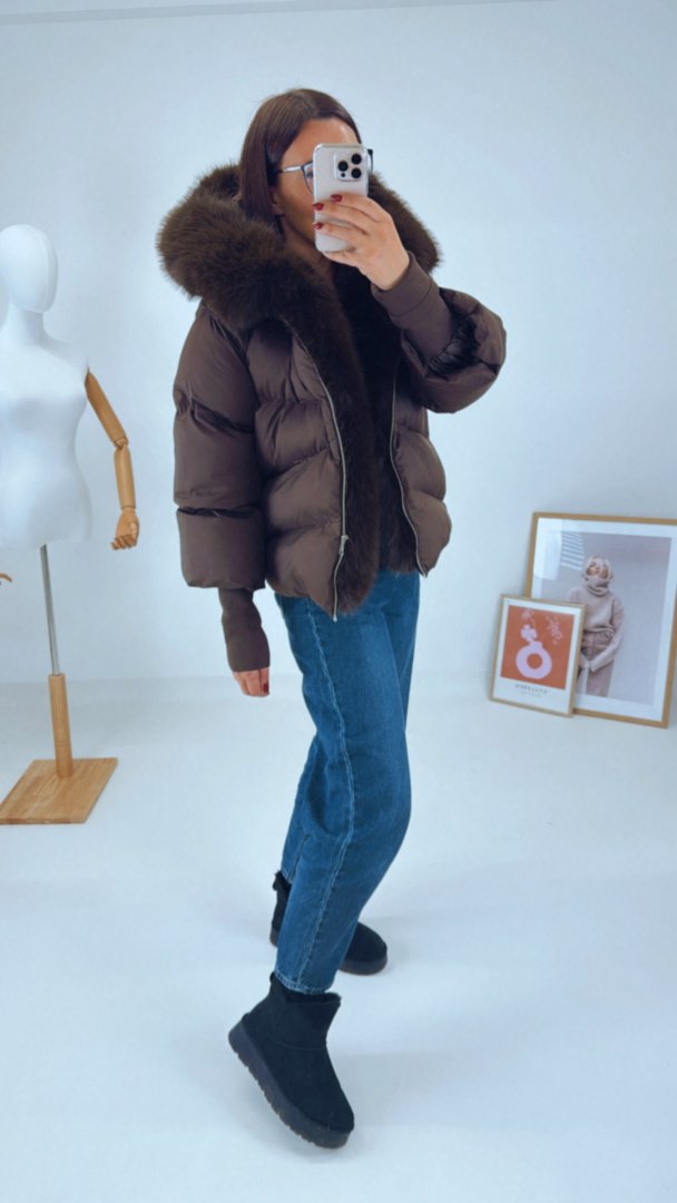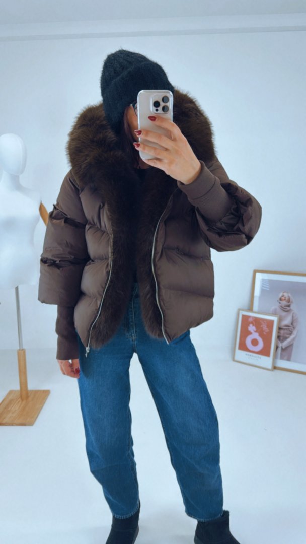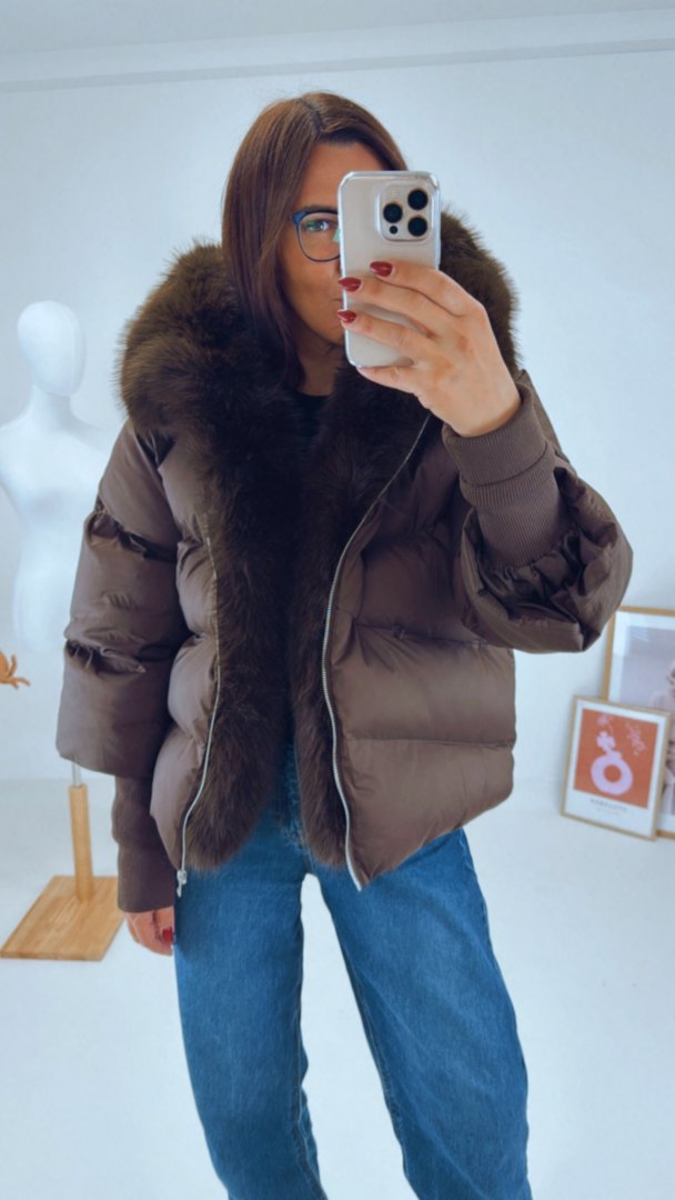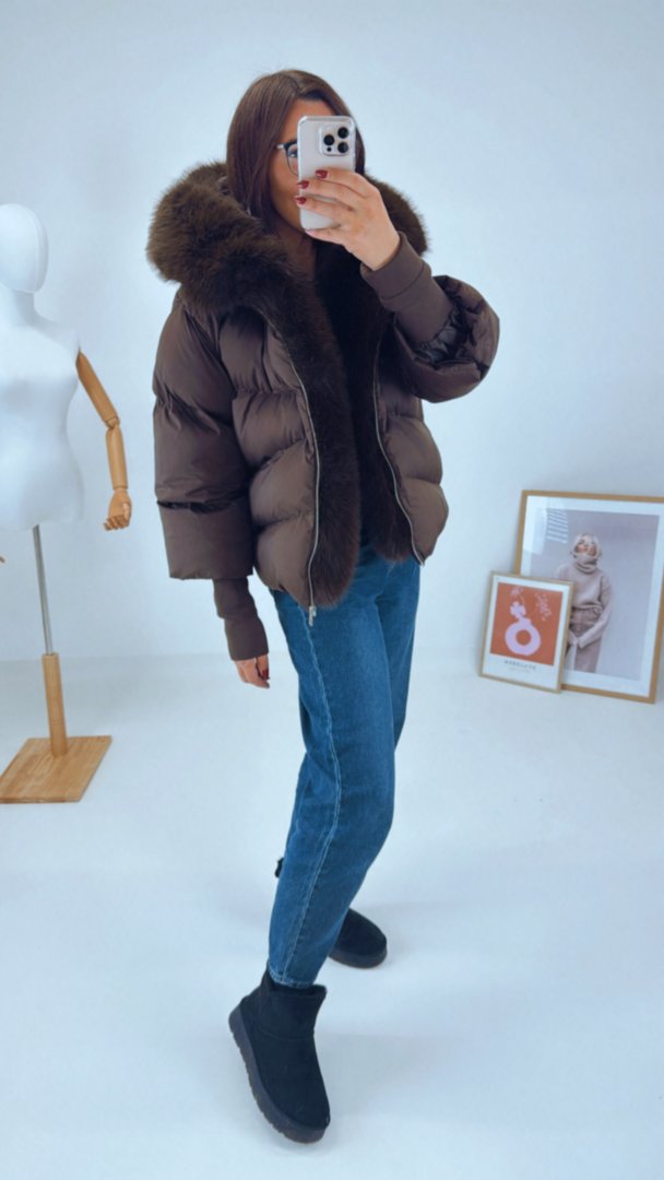 - Zimní nadýchaná bunda s velkým huňatým límcem na kapuci a podél zipu. (celý límec lze odepnout)