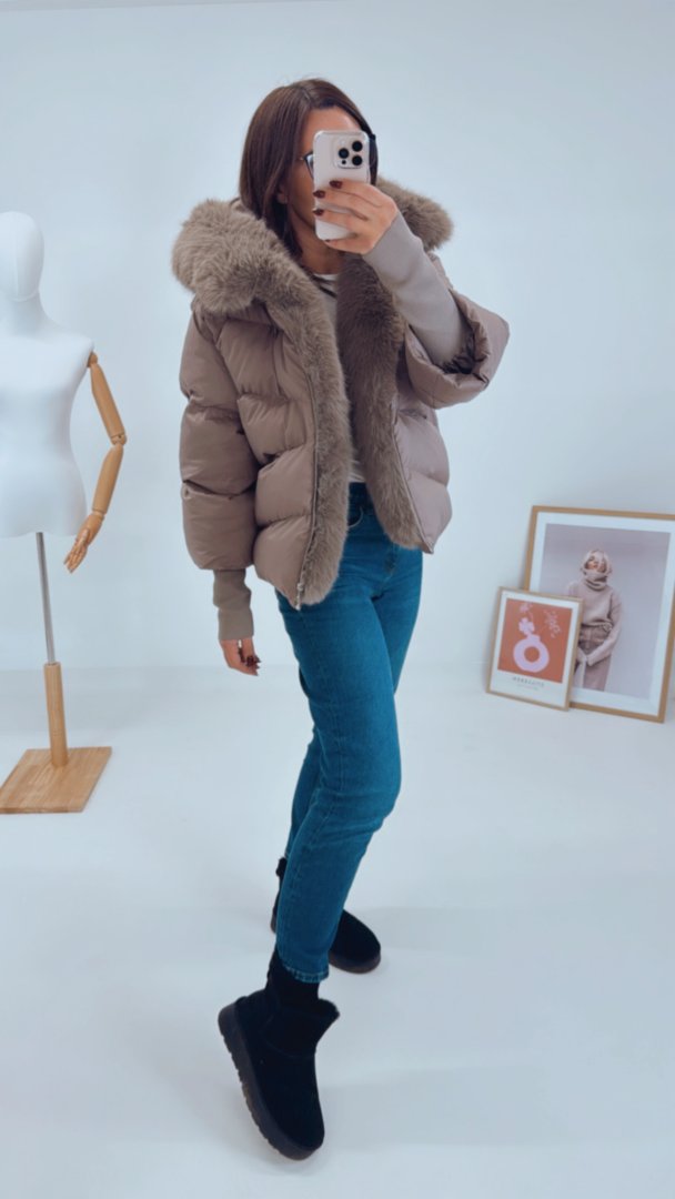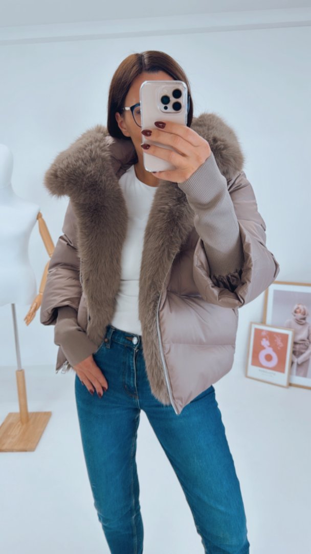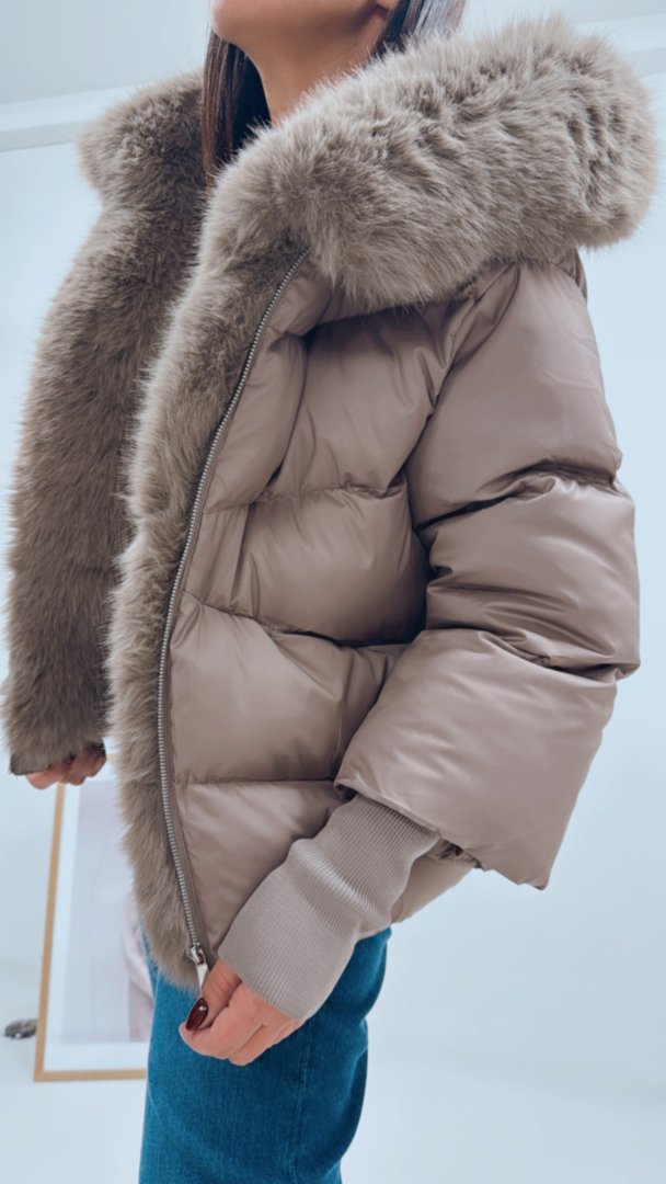 - Zimní nadýchaná bunda s velkým huňatým límcem na kapuci a podél zipu. (celý límec lze odepnout)