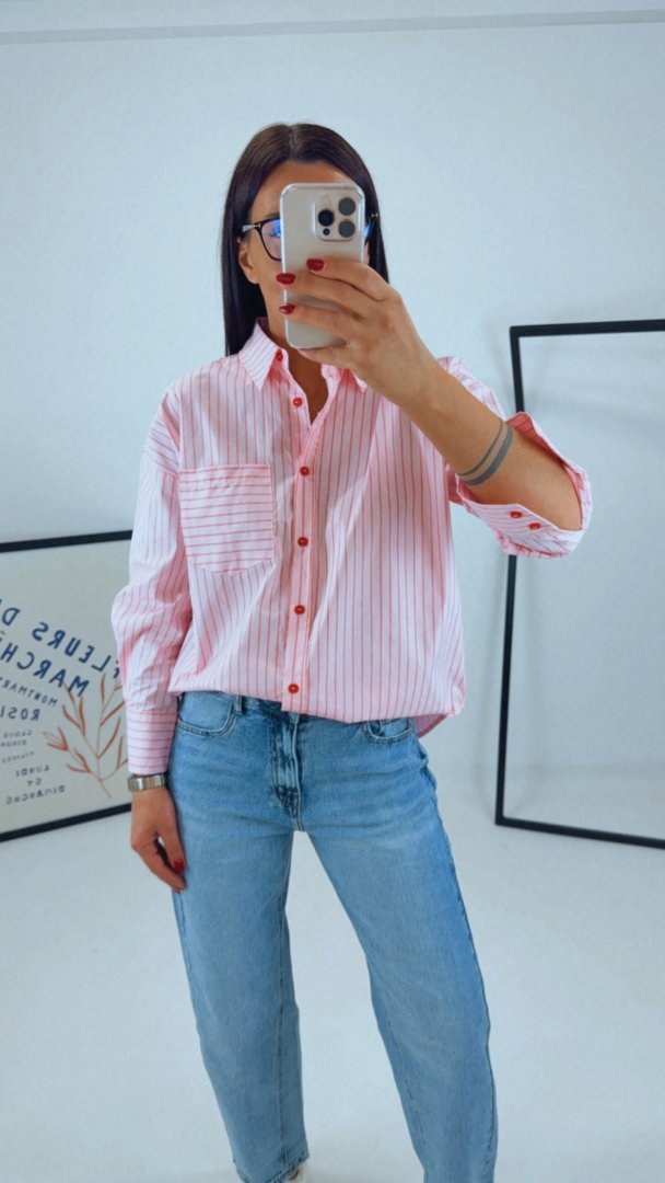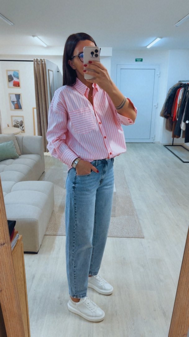 - Oversized růžová košile s jemným proužkem - premium kolekce