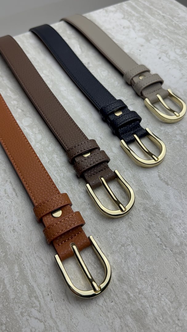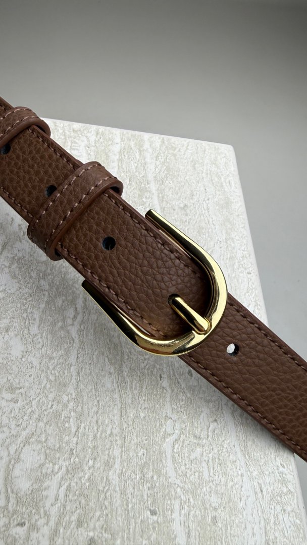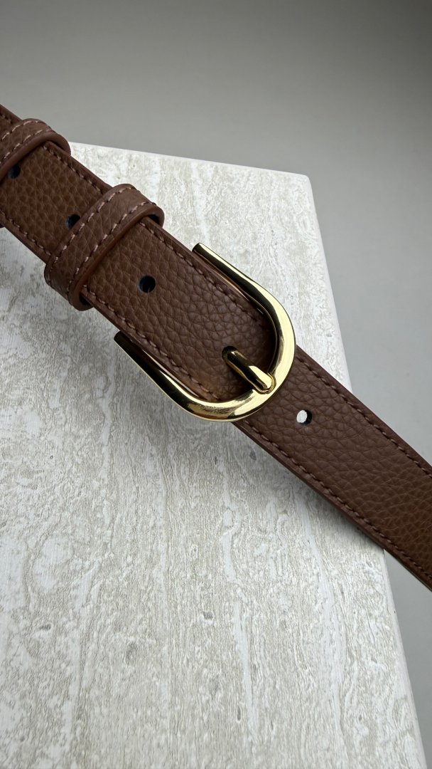Kožený opasek se zlatou sponou.