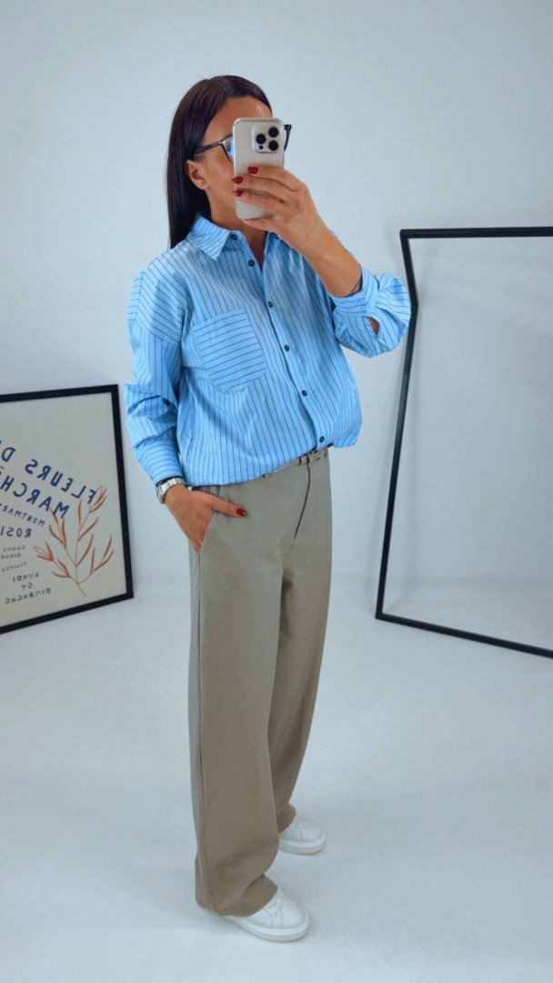 - Šedo/béžové kalhoty s VYSOKÝM PASEM