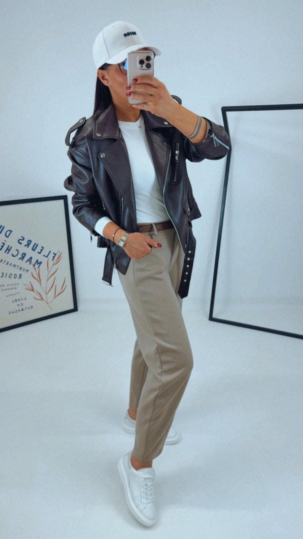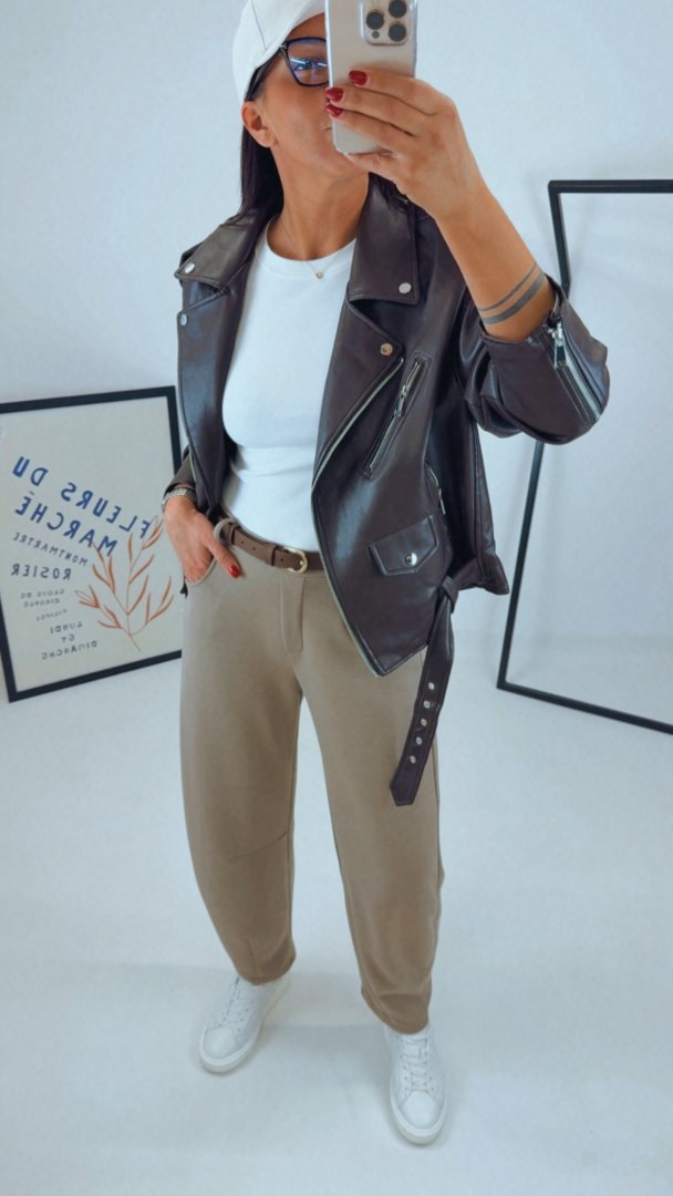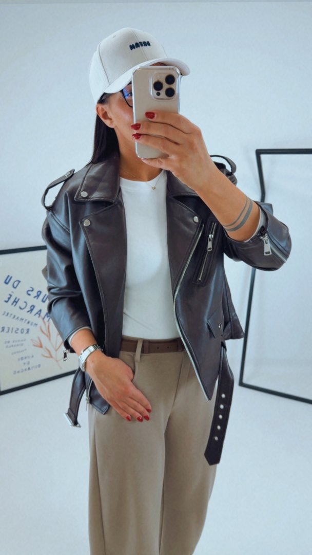 Stylový koženkový křivák ve volnějším oversized střihu / mírně prodlouženýVnitřní podšívka je tón v tón. Kovové stříbrné prvky. Modelka má na sobě velikost S/M (je volnější),Výška modelky 180cm / bězná velikost LVel S/M - sedí S/M/L