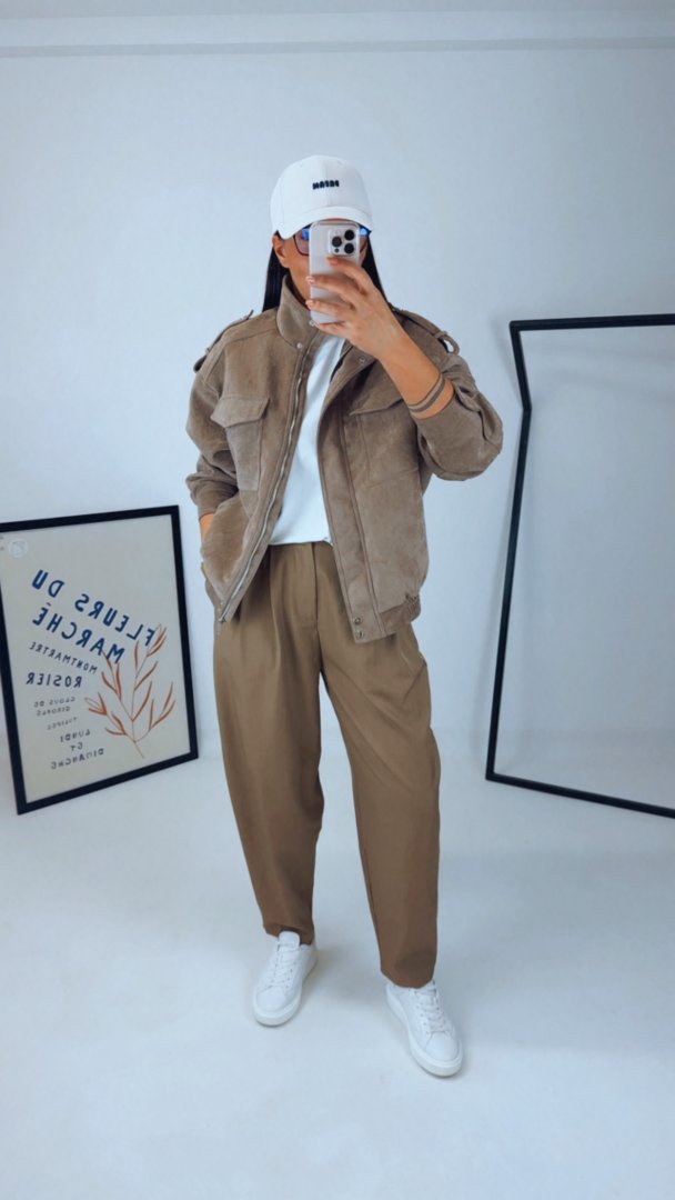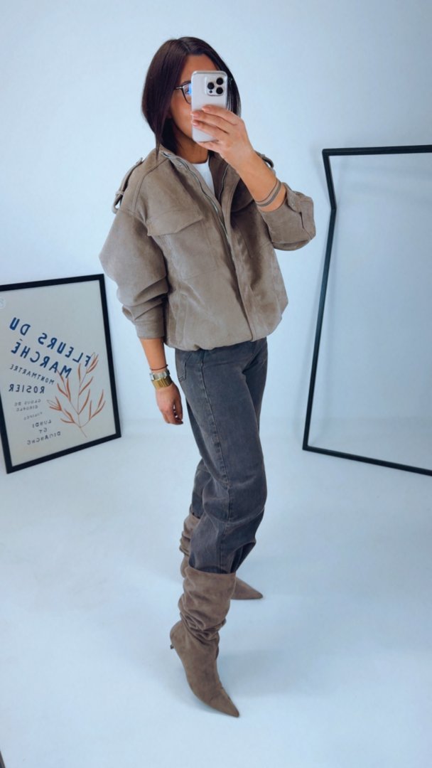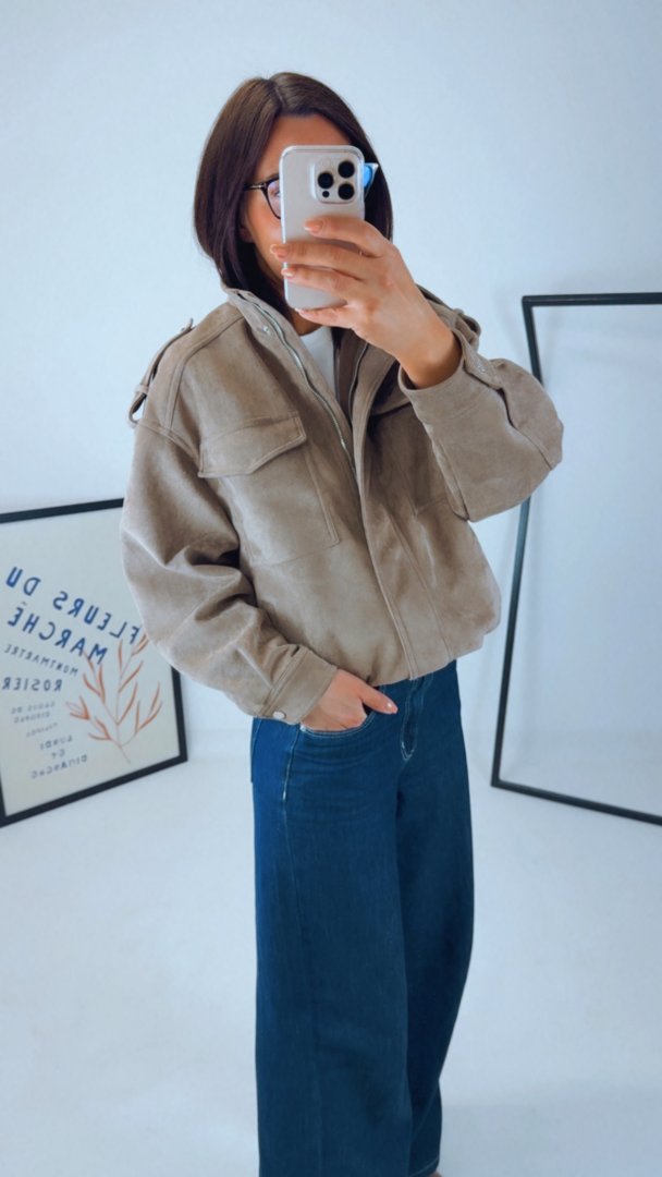 - Stylová a virální semišová bunda s kapsami a límcem