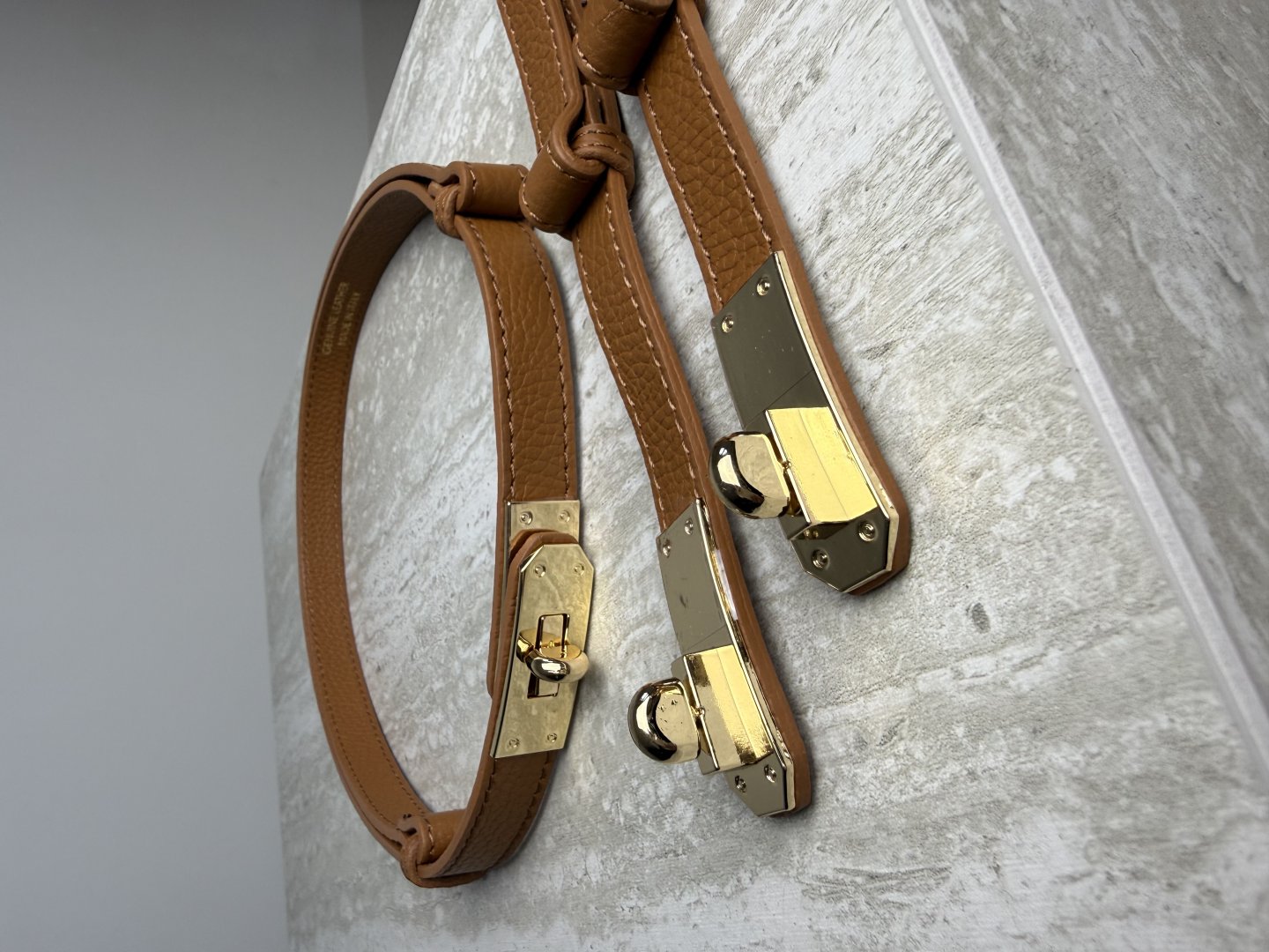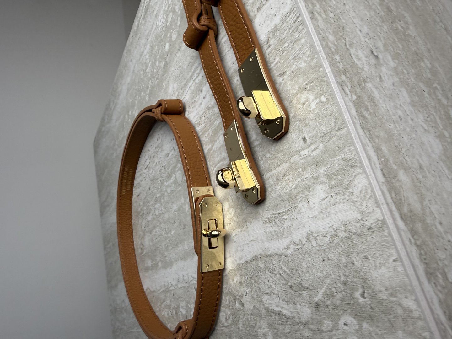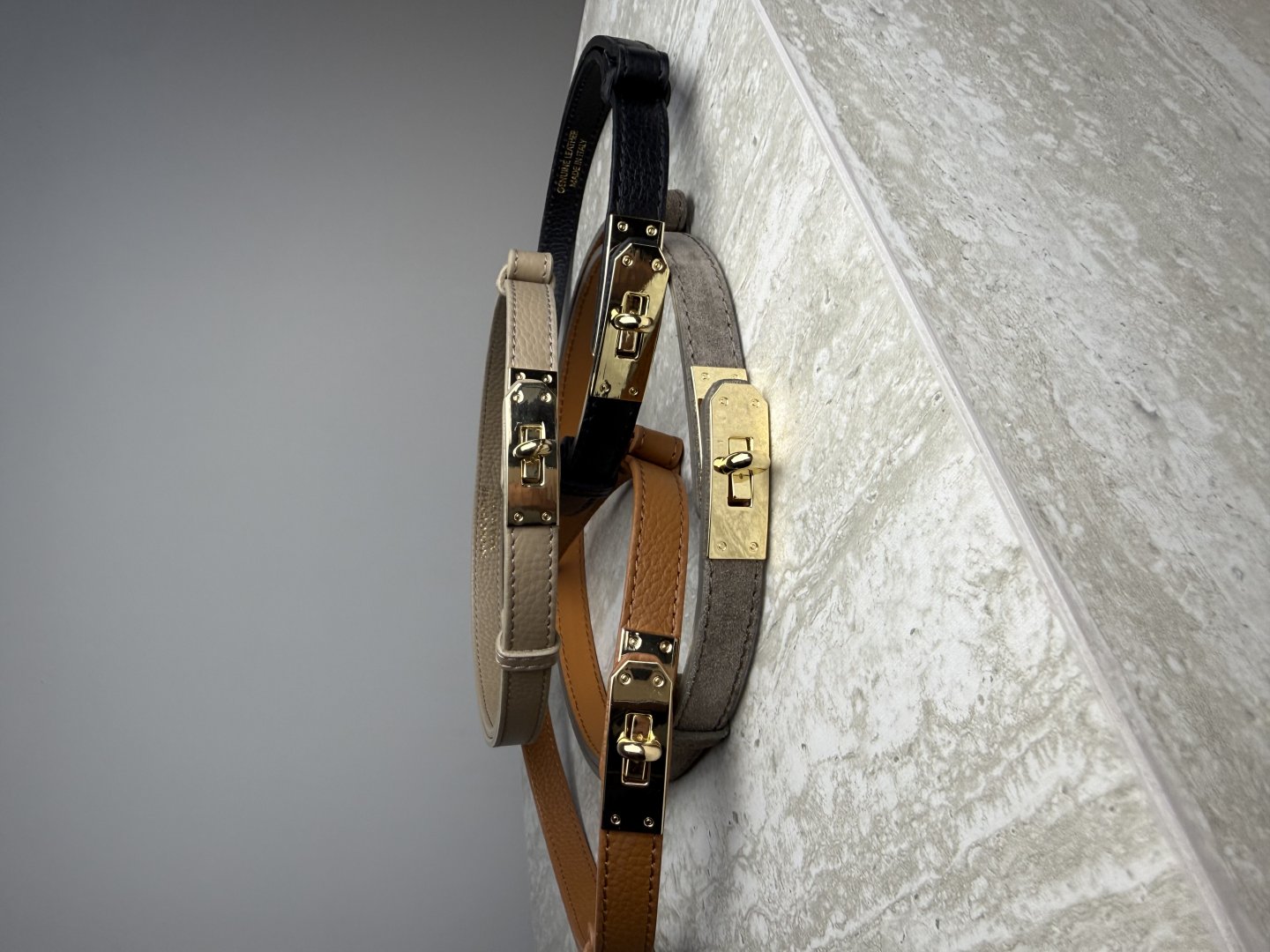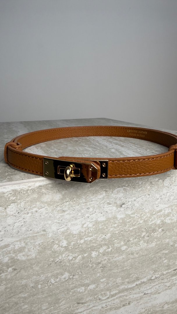 Tenký, kožený nastavitelný opasek se zlatou sponou