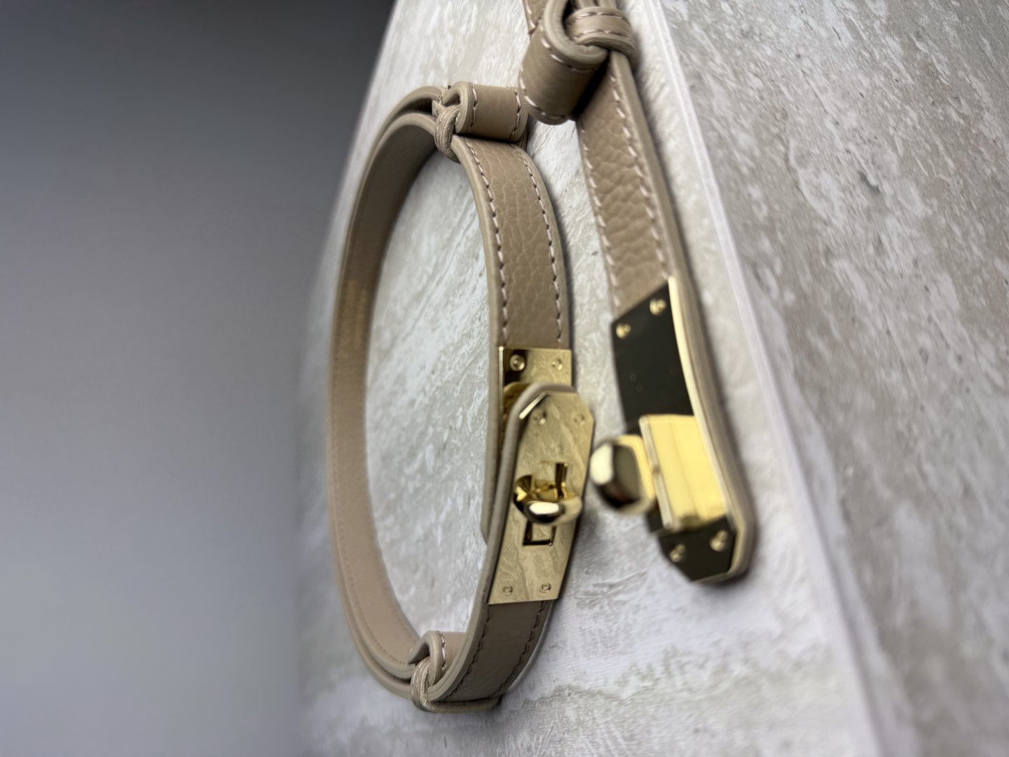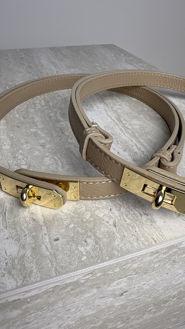 Tenký, kožený nastavitelný opasek se zlatou sponou