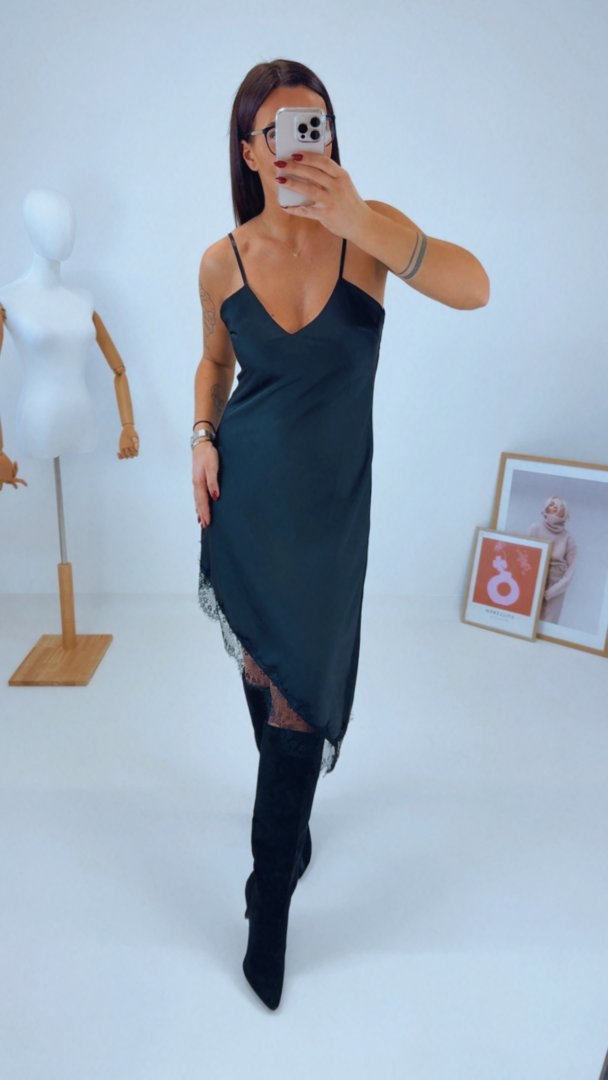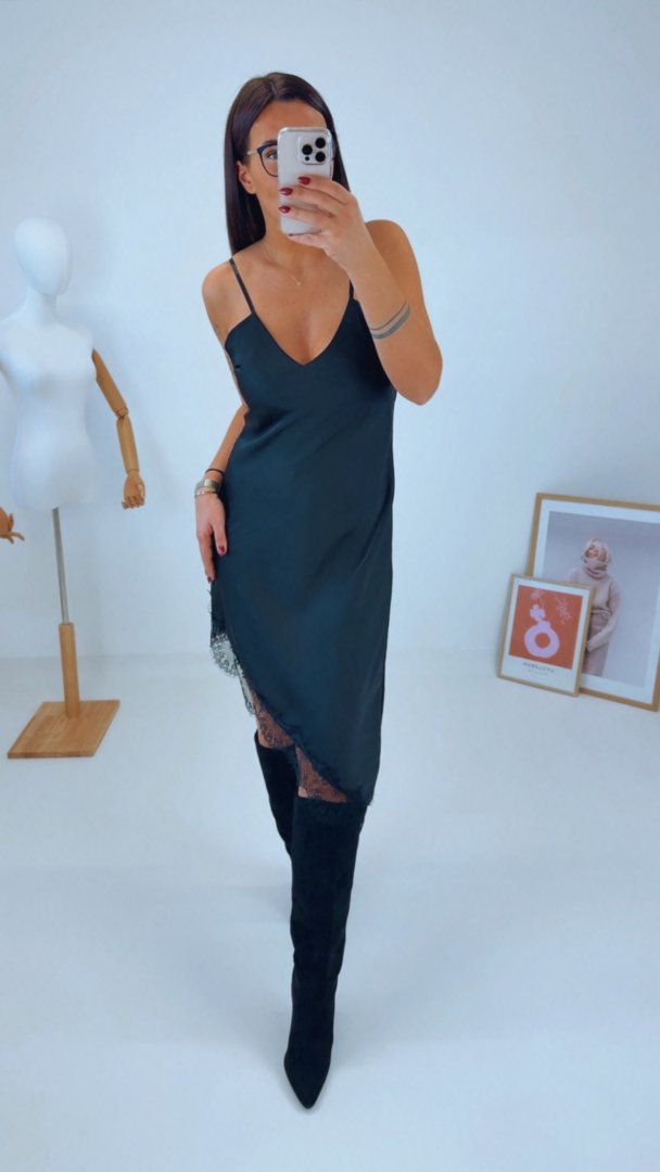Krásné elegantní saténové šaty s krajkou ve spodní části